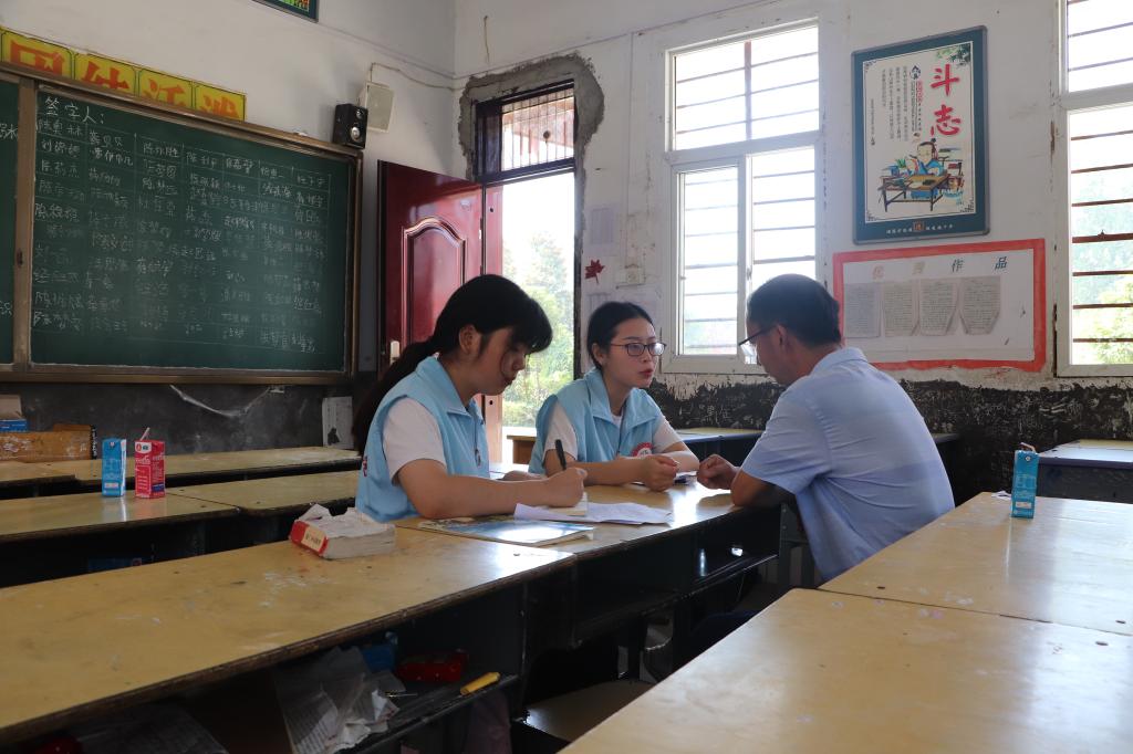 为深入了解贫困地区教育发展受阻原因和留守儿童受教育状况,挖掘最美乡村教师事迹,树立优秀典型。7月6日,澳门太阳集团城97288名“三下乡”活动实践队队员在团队指导老师李依的带领下走访到确山县后营村后营小学,对校长潘银昌进行采访。