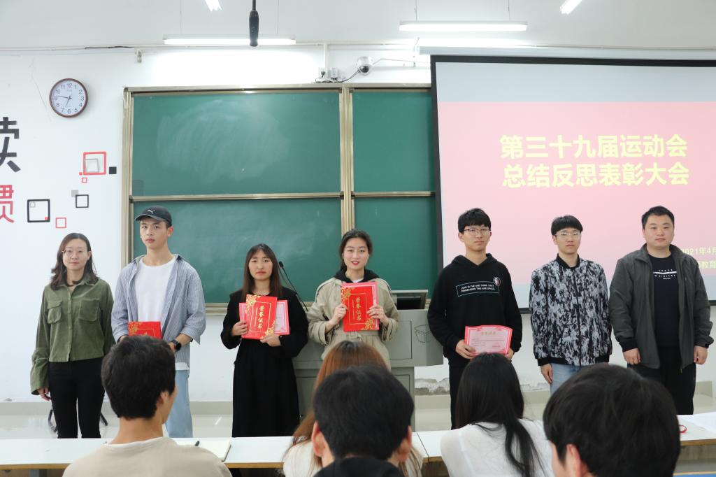 为总结经验,表彰先进,4月29日中午,澳门太阳集团城9728在社科楼121教室召开了第三十九届运动会总结表彰大会。学生党支部书记李依、团委书记刘莅原、参赛运动员以及工作人员共同参与了此次会议。会议由学生会主席姚沛龙主持。