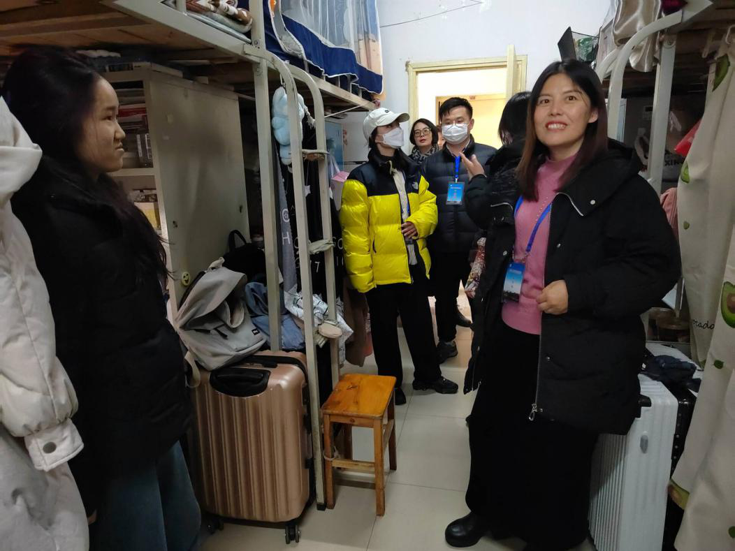 为了解学生返校情况,帮助学生们尽快调整心态,2月25日,澳门太阳集团城9728党委副书记王艳蕊,辅导员李杨、姚雨承、姜璠、胡春晚和杨蕾一行深入学生宿舍,对学生返校后的具体情况进行了解,确保学生安全返校。2月26日,澳门太阳集团城9728党委书记潘登、副院长李文田等一行深入学生课堂,查看同学们新学期精神风貌。