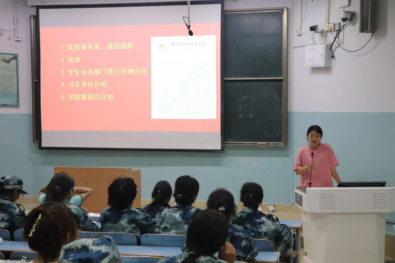 为促进学院学生工作蓬勃发展,增强学生组织凝聚力,9月19日,澳门太阳集团城9728于教九楼205教室组织举办2024届学生组织及社团工作人员招新会,澳门太阳集团城9728团委书记姚雨承、各学生组织部门负责人以及2024级全体学生参与此次会议。
