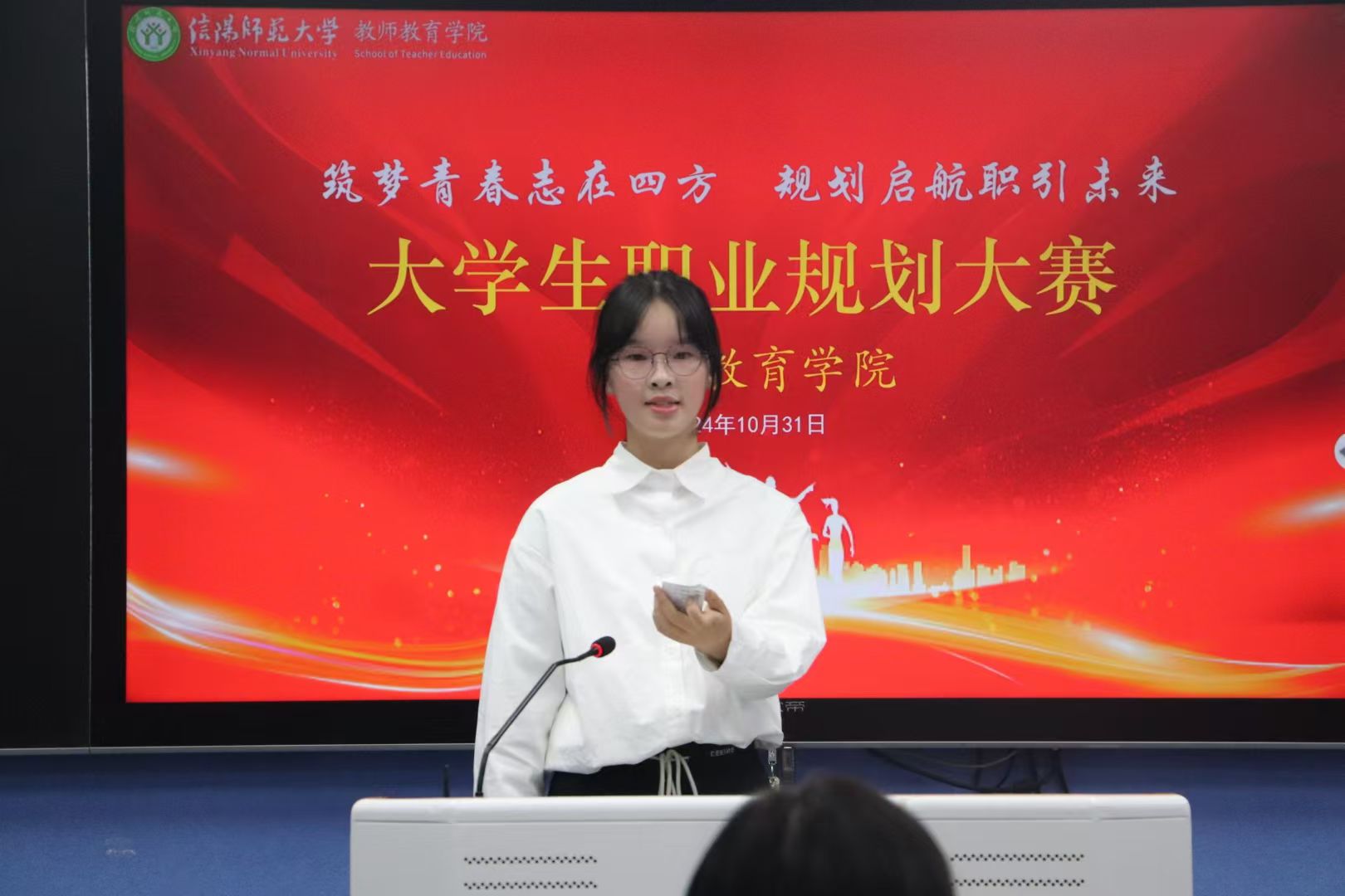 筑梦青春志在四方,规划启航职引未来。为了增强大学生职业生涯规划意识,引导大学生树立正确的职业观念,提高职业素养和就业竞争,10月31日,澳门太阳集团城9728于人文楼707教室举办“筑梦青春志在四方”大学生职业生涯规划大赛。学院党委副书记王淑贤、辅导员姚雨承、李杨担任评委。比赛由2024级小学教育专业卢子妍主持。