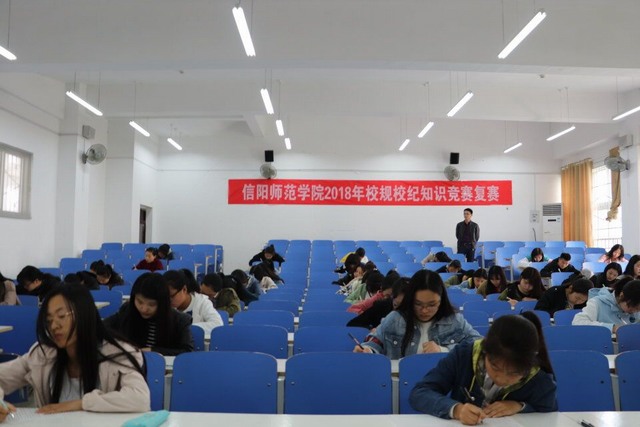 本次竞赛活动以“学习校规校纪 规范学生行为 建设优良学风” 为主题,分初赛、复赛和决赛3个环节,历时2个月。竞赛内容涵盖《普通高等学校学生管理规定》(教育部令第41号),《信阳师范学院学生工作制度汇编》(2017年版)、《思想政治教育材料选编—2017年学生工作规章制度专刊》等。通过本次竞赛活动,旨在进一步规范学校学生管理行为,维护学校正常的教育教学秩序和生活秩序,提高学生遵纪守规意识,促进优良学风的建设,保障学生合法权益,培养德、智、体、美等方面全面发展的社会主义建设者和接班人。