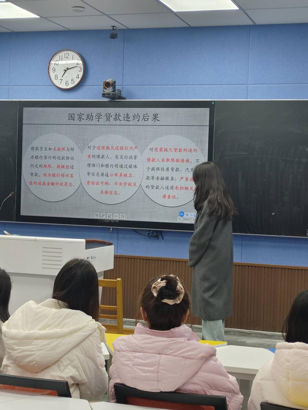 会议主要围绕校园地助学贷款学生毕业确认、生源地助学贷款学生毕业确认、贷款毕业生注意事项三部分开展。主持人向大家点明了助学贷款和金融诚信的重要意义,对还贷流程及还款方式等内容进行了详细讲解,提醒大家及时登录贷款系统申请毕业确认。为了增强学生诚信还贷的意识,认识到诚信还贷的重要性,主持人还列出了国家助学贷款不同违约情况对应的后果,包括信用受损、影响未来发展等。本次会议毕业生参与度高,大家普遍认为会议及时必要,会议结束后,毕业生积极咨询相关问题,深入了解助学贷款的相关政策和规定。