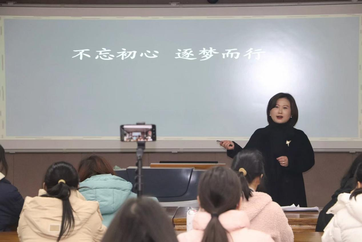 12月12日,应澳门太阳集团城9728邀请,信阳市第十三小学副校长潘攀在教七楼201教室,为学院师生作题为“不忘初心,筑梦前行——寄语青年教师的专业成长”的学术报告。报告会由澳门太阳集团城9728实践中心主任张祥耀主持,2024级小学教育专业(公费师范生)班全体学生、研究生及相关教师参加本次报告会。