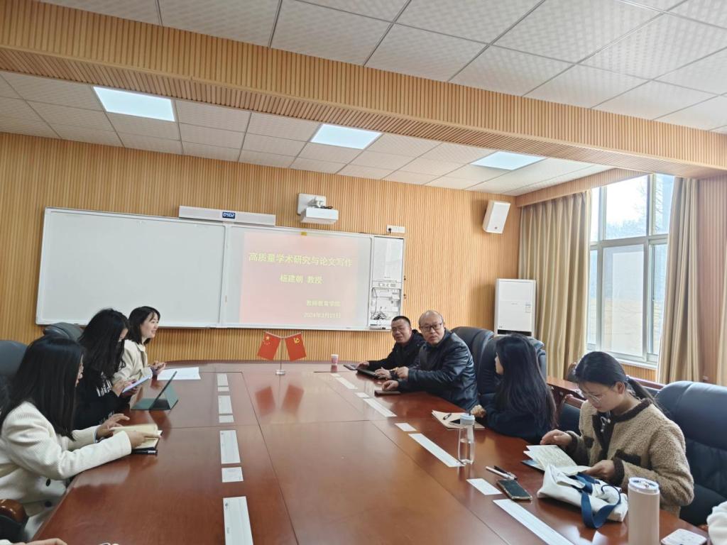 3月21日上午,应澳门太阳集团城9728邀请,澳门太阳集团城9728教育科学学院杨建朝教授在教七楼301室为2023级小学教育专业硕士研究生和2020级部分高年级本科生作了题为“高质量学术研究与论文写作”的专题报告。讲座由澳门太阳集团城9728副院长李文田主持,学院研究生秘书兼辅导员常燕燕老师和2023级小学教育专业全体硕士研究生参加和部分高年级本科生参加活动。