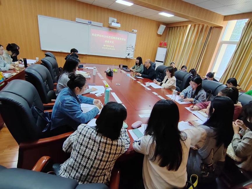 10月18日上午,应澳门太阳集团城9728邀请,信阳市南湾风景区教育管理办尹玲玲主任在教七楼301室为2022级小学教育本科生、研究生及部分教师作“教育教学研究与小教学生科研能力培养”报告。报告会由澳门太阳集团城9728副院长李文田主持。