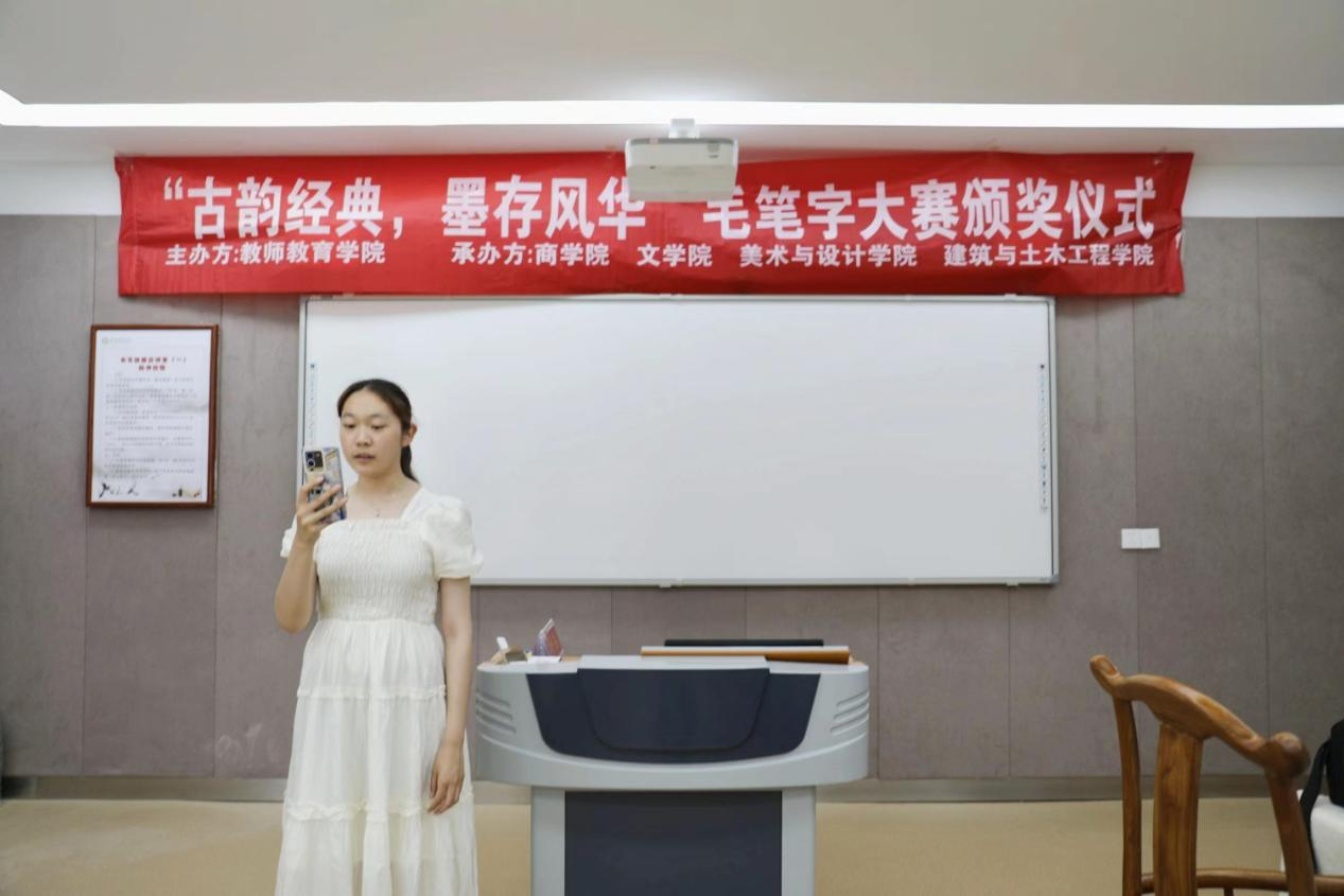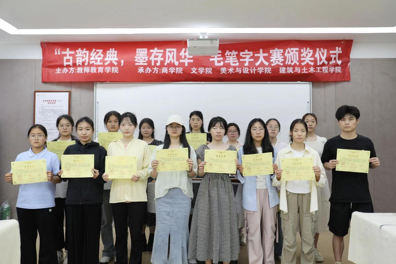 5月9日,由澳门太阳集团城9728行知教育工作室,习乐学社主办的“古韵诗词,墨存风华”毛笔字书写大赛颁奖仪式在教七楼201教室顺利举行,习乐学社工作人员及本次大赛获奖者共同参加此次颁奖仪式。