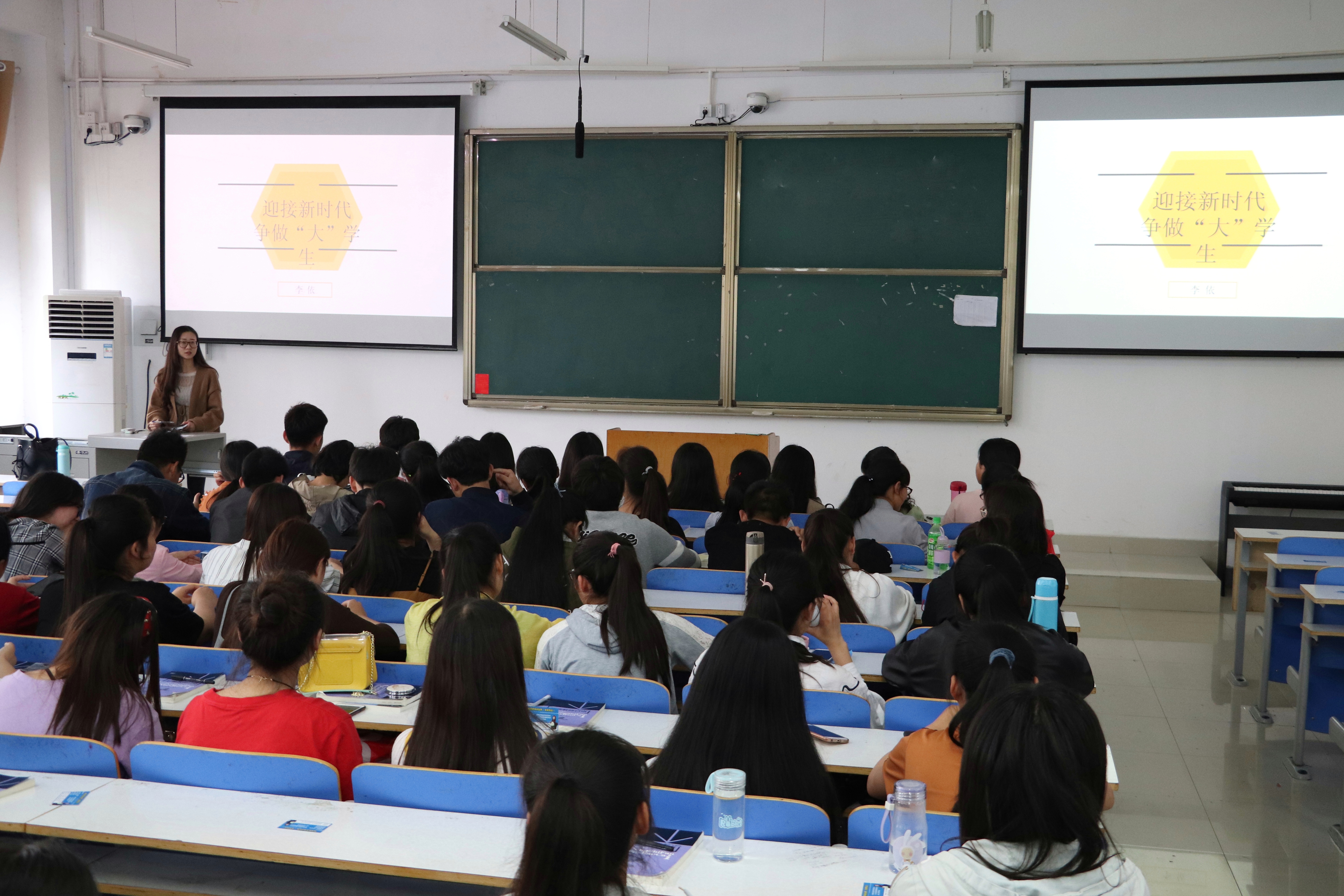 2018年5月15日,澳门太阳集团城9728本科三班和专科一班全体成员及辅导员在社科楼121教室开展了以“迎接新时代,争做‘大学生’为主题的宣讲活动。